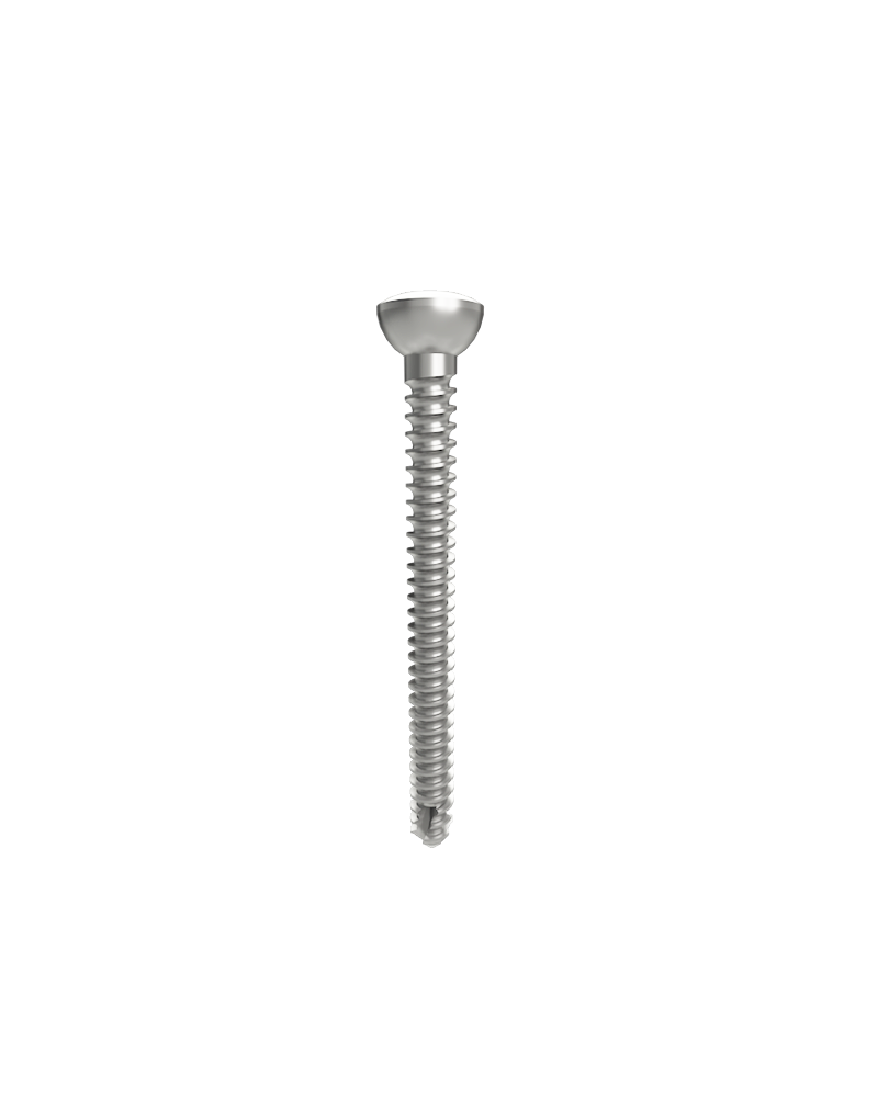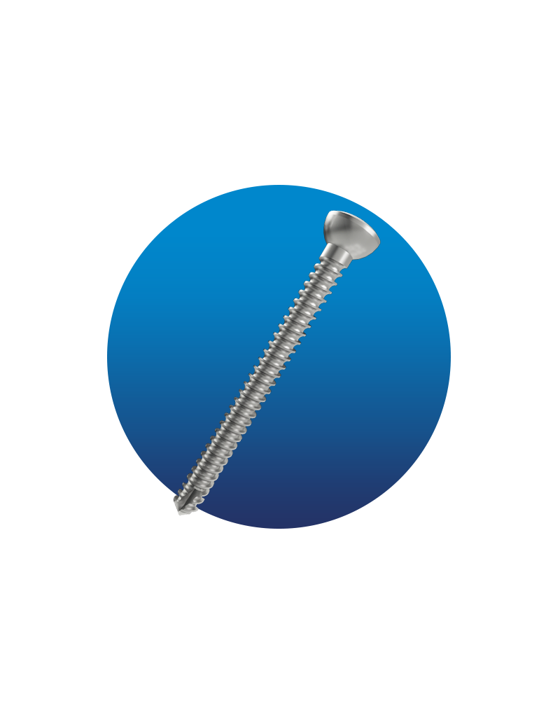 Tornillo cortical de Titanio con 1.5 mm diámetro y rosca continua. La punta con tres autorroscante del tornillo evita el uso de machuelo y la cabeza cónica permite un mejor amoldamiento en la placa.